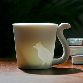 北欧ins猫咪马克杯白瓷家用简约大容量陶瓷燕麦早餐...