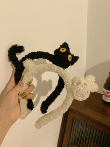 猫咪兔子羊羔毛发箍女搞怪毛绒洗脸头箍发窟发捆少女可...