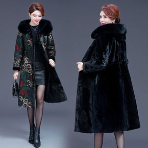 新款加肥加大码女装冬季大衣女皮毛一体女装妈妈冬装加...