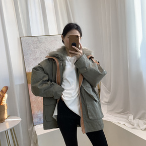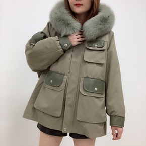 2021冬新款獭兔内胆可拆卸狐狸毛领派克服女短款休...