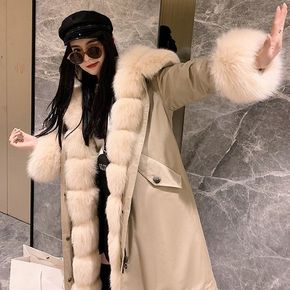 连帽狐狸毛领兔毛内胆多穿皮草派克服大衣女显瘦小个子...