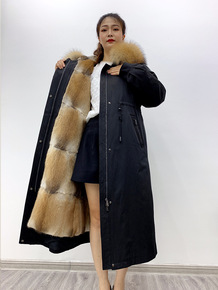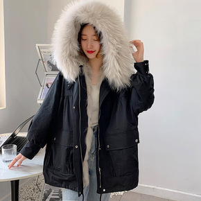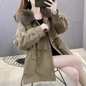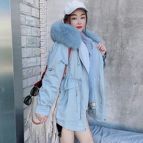 2021秋冬新款獭兔毛内胆派克服女貉子毛可拆卸大衣...