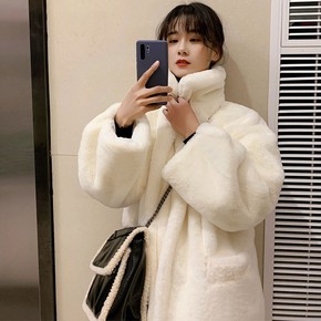 爆款仿貂毛立领气质毛绒大衣獭兔毛外套女冬加厚韩版系...