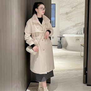 2021年秋冬新款獭兔毛皮草内胆中长款韩版风衣外套...