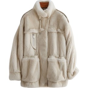 羊羔毛外套女2021冬季新款韩版立领水貂绒上衣宽松...