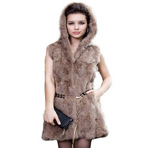 秋冬季皮草马甲兔毛连帽马甲中长款坎肩女性保暖马甲厂...