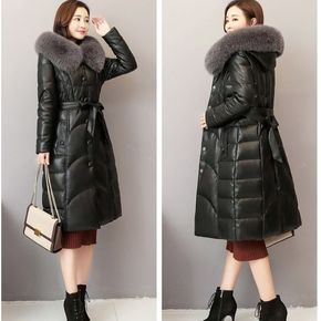 2019新款海宁皮衣皮草仿狐狸毛领女外套中长款连帽...
