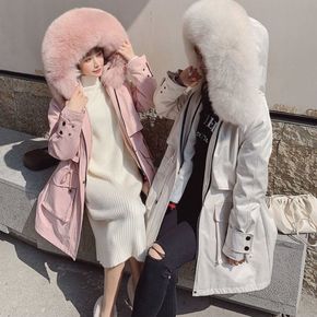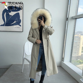 派克服女2021新长款仿水貂獭兔毛可拆卸内胆尼克服...