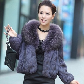 海宁皮草羽绒服女狐狸毛皮草时尚外套女羽绒服皮草拼接...