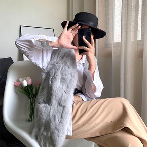 2021年秋冬真兔毛皮草中长款马甲新款女海宁皮毛一...