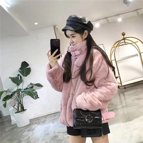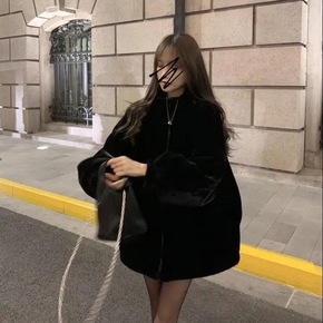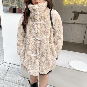 仿兔毛外套女2021新款宽松立领仿皮加厚保暖中长款...