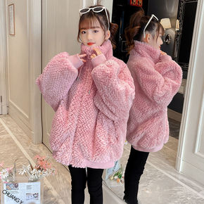 包邮女童2021秋冬款女宝宝中长款貂绒外套儿童韩版...
