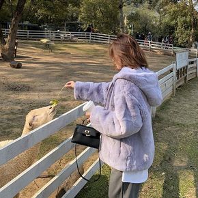 秋冬新款獭兔毛毛绒仿皮草外套女宽松连帽年轻时尚洋气...