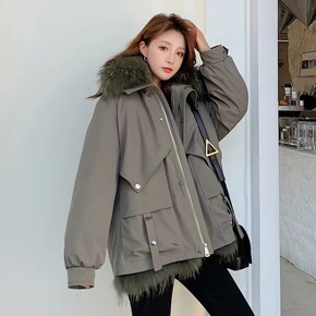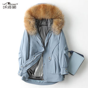 派克服女獭兔毛内胆可拆卸2021年冬季新款狐狸毛领...
