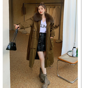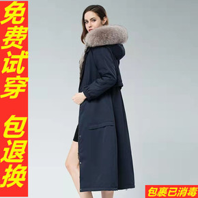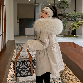 霖涵21新款獭兔毛内胆可拆卸大毛领派克服女冬狐狸毛...