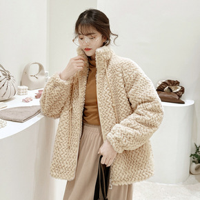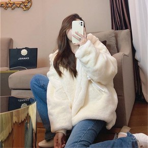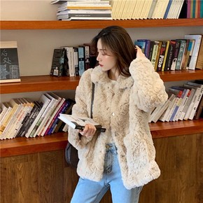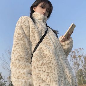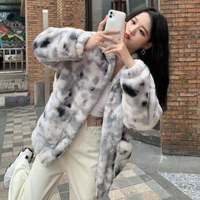 2021新款秋冬季韩版羊羔豹纹毛绒绒大衣獭兔毛皮草...
