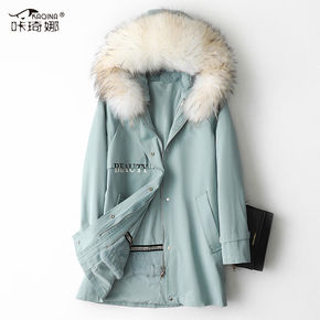 小个子2022春秋冬季新款女士中长款兔毛内胆貉子毛...