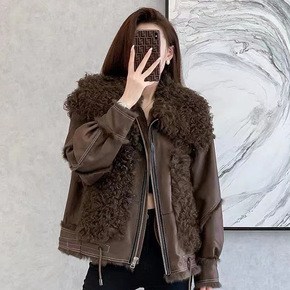 特价北鲲皮草外套你羊卷毛拼接兔毛皮毛一体女短款年轻...