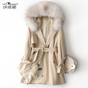 派克服女2021冬新款海宁皮獭兔毛内胆可拆卸狐狸毛...