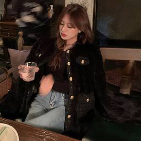 2021冬季新款港风加厚保暖仿獭兔毛外套秋冬百搭毛...