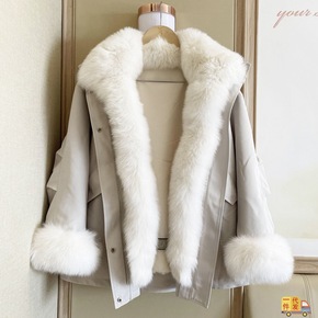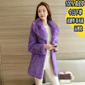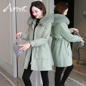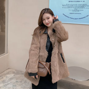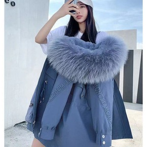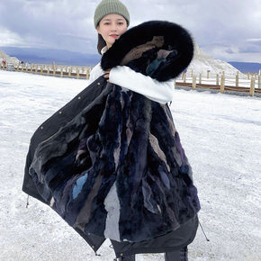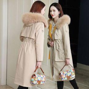 服女中长款2021新款真狐狸毛领皮草獭兔毛内胆冬季...