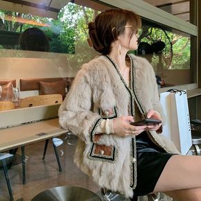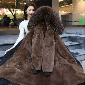 代发服新款女士真毛皮草中长款可拆卸獭兔毛皮毛一体外...