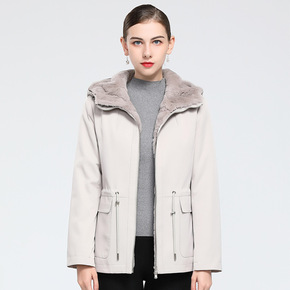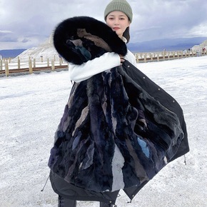 2021新款服女仿皮草狐狸獭兔毛内胆可拆卸连帽中长...