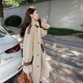 新款果果家仿貂毛双排扣气质毛呢外套女2022冬季新...