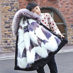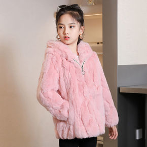 2021新款儿童獭兔毛拉链连帽中大童皮草兔毛外套宝...