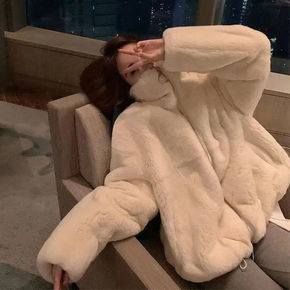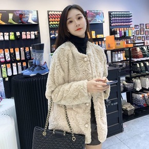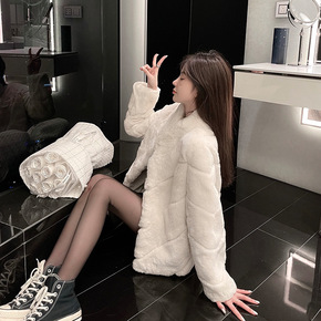 2021新款韩版立领仿獭兔毛皮草外套女冬时尚宽松棉...