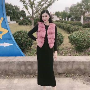 海宁新款真兔毛脖头獭兔毛皮草马甲背心坎肩女皮毛一体...