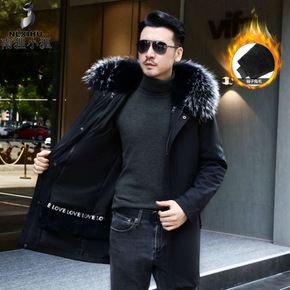 派克服男2021新款兔毛内胆可拆卸中长款冬季皮外套...