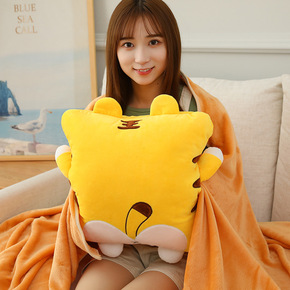 春夏季两用抱枕毯可爱太阳花动物抱枕二合一空调毯办公...
