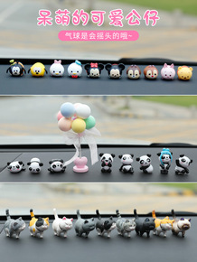 可爱熊猫汽车摆件创意卡通公仔摇头气球车内饰品摆件车...