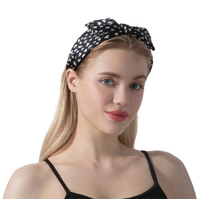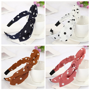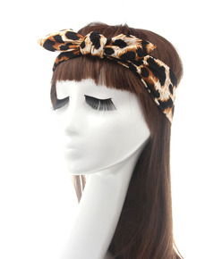 韩版新款棉质兔耳朵打节豹纹发饰弹力发带发箍...