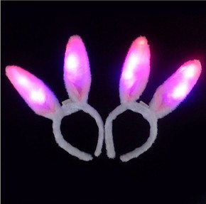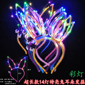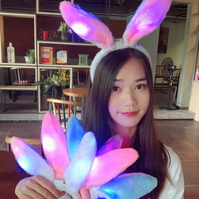 厂家直销LED闪光兔耳头箍发光可爱绒毛兔子耳朵复活...