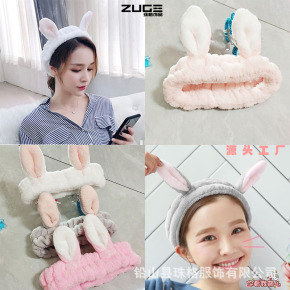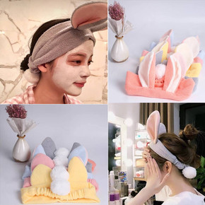 新款韩版洗脸发箍兔子耳朵可爱软萌束发带洗脸化妆供淘...