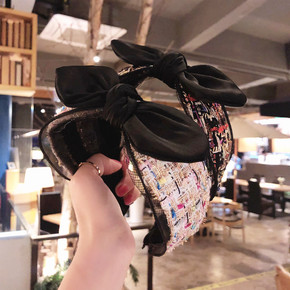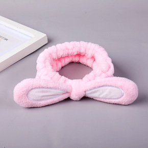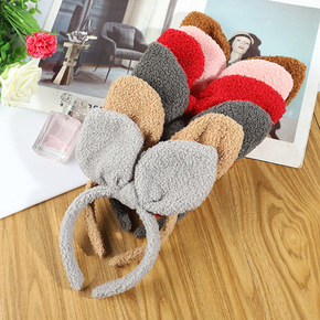 批发高档法兰绒刺绣蝴蝶结发带打结兔耳朵发箍洗脸化妆...