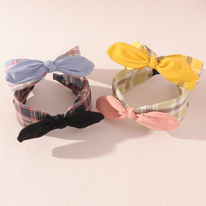 日韩新款兔耳朵发箍女式洗脸化妆刘海头箍经典款格纹布...