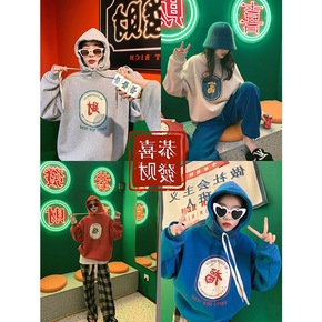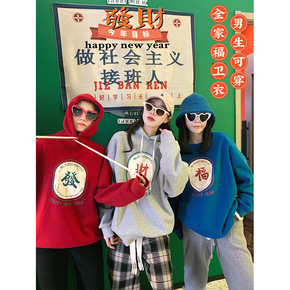 新年發财 圆领/连帽加厚绒 情侣全家福招财卫衣...