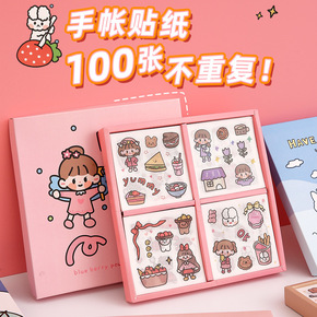 100张水杯贴纸无痕防水手账贴纸套装手ins帐风装...