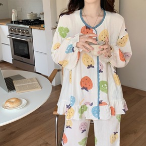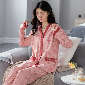 春秋季针织棉开衫长袖睡衣女薄款可外穿韩版套装休闲翻...