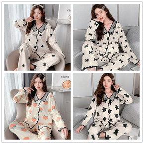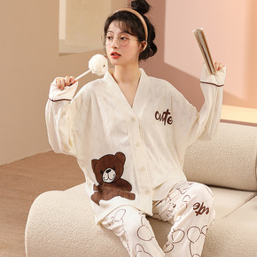 9188尘熙春秋甜美公主开衫睡衣套装女长袖纯色针织...