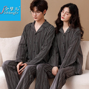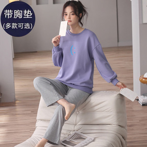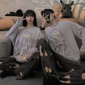 秋冬新款睡衣女情侣家居服长袖圆领套头简单大方休闲可...