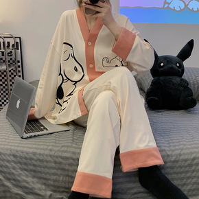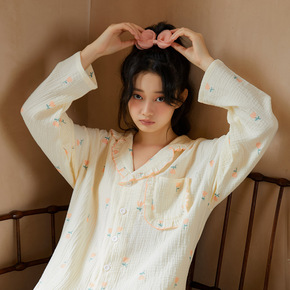 睡衣女春秋款纯棉长袖开衫学生ins风可外穿薄款加大...