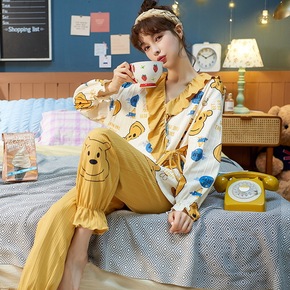 睡衣女春秋款纯棉2021年新款长袖全棉可爱卡通长裤...