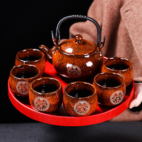 结婚茶具套装家用中式婚庆整套陶瓷大红色敬茶茶杯茶壶...