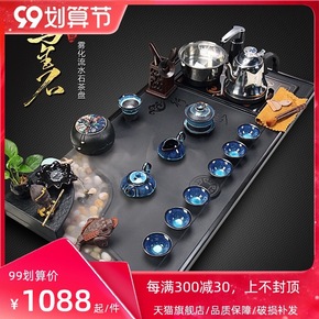 乌金石茶盘整套功夫茶具套装家用雾化流水观景石茶台简...