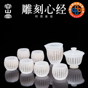 容山堂玉瓷心经雕刻整套功夫茶具套装琉璃玻璃大盖碗禅...