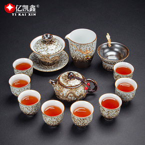 伊文陶瓷功夫茶具套装家用客厅办公室轻奢会客乌金瓷石...